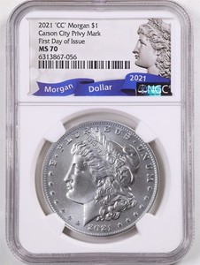 Dólar de plata Morgan 2021-CC Privy $1 MS70 NGC 6313867-056 primer día de emisión