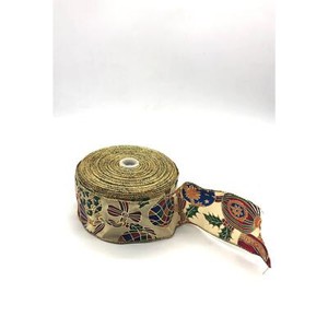Precioso adorno navideño con cable temático en rollo grande de cinta dorado