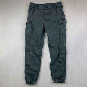 Uniqlo Mens Pants Large 33-36 Gray Cargo Tapered Drawstring Cotton Spandex