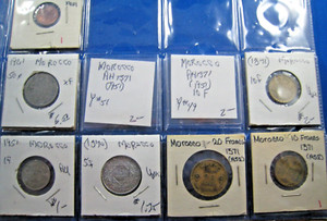 MONEDAS POR PAÍS - MARRUECOS 1921 a 1952 - LOTE DE 8