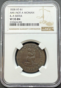 1838 AM I NOT A WOMAN & A BROTHER ESCLAVITUD TIEMPOS DIFÍCILES TOKEN ANACS SOAPBOX VF30 CFB 434,28 EUR