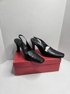 Zapatos Escada Vintage Negros Eslinga Trasera Para Mujer 9 Cuero Puntera Cuadrada Tacón Gatito 29,13 EUR