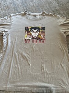 Camiseta Uniqlo Anime Demon Slayer Kimetsu No Yaiba Burn Your Heart Beige Talla M