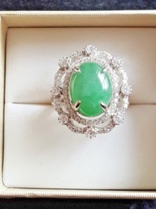 Genuine Nice Green 3.1ct Jadeite Jade (TypeA) 925 Silver Ring SZ Adjustable