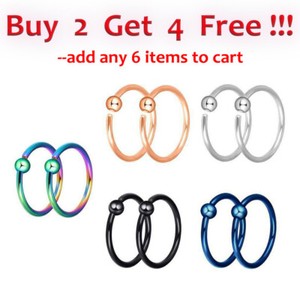 2 piezas Anillo de cuentas cautivas 316L acero tabique nariz anillos de aro 20G