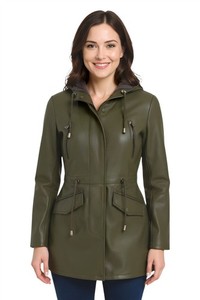Gabardina para mujer chaqueta Parker de cuero negra con capucha de varios bolsillos 143,35 EUR159,27 EUR