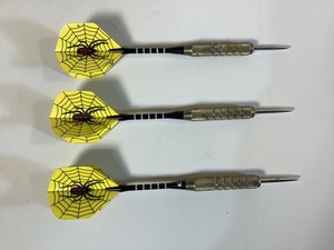 Juego de 3 dardos punta de acero - Vuelos telaraña amarilla, diseño araña viuda negra