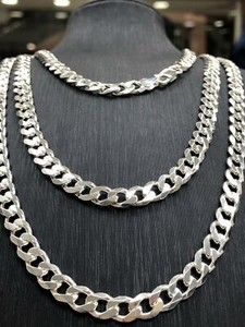 Collar Grueso Pesado Cadena Bordillo Clásico Plata de Ley 925 Sólida 24" 26" 220gr