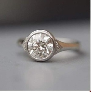 Anillo solitario vintage, anillo de boda de corte redondo simple, conjunto de bisel anillo minimalista