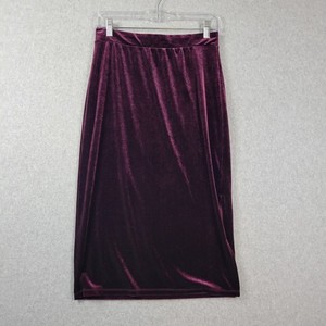 Falda recta midi elástica de terciopelo púrpura suave halógena para mujer pequeña