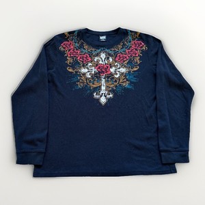 Camisa MMA Elite Para Hombres XL Térmica Negra Rosas Cruz Grunge Cyber Punk Y2K De Colección