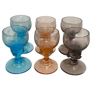 "Lote de colección de 6 vasos de jerez cordial con patas grabadas multicolores de 3"" de alto"