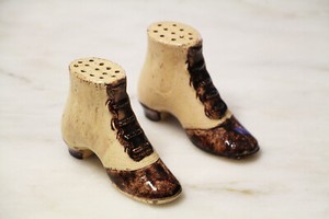 Siglo XIX, conjunto victoriano de dos soportes para palillos de dientes que representan zapatos de mujer 387,24 EUR
