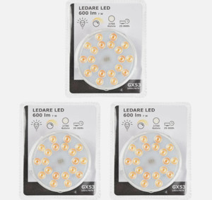 3x Bombillas LED IKEA Ledare GX53 | 600lm | 2700 Kelvin | Blanco Cálido | Regulable | 7W