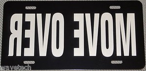 MOVE OVER on black aluminum auto license plate car truck tag