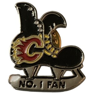 Logotipo vintage de Calgary Flames de la NHL No. Pin de recuerdo de patín sobre hielo de 1 ventilador
