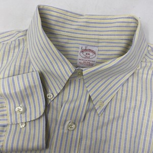 Camisa Brooks Brothers 346 XXL para hombre amarilla azul a rayas manga larga con botones