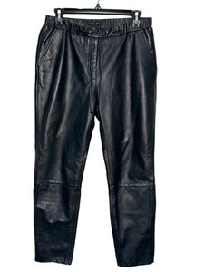 Pantalones para mujer Trouve 100 % cuero genuino con cordón negros sin dobladillo