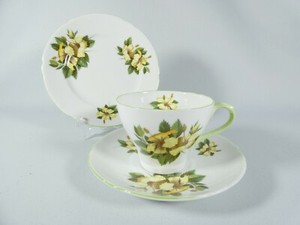 Vintage Shelley Bone China Hibiscus Teacup Trio Cup Saucer Plate Set 13882