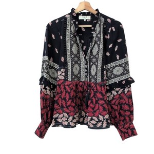 Blusa Sea New York Eloise Estampada Seda 10 Azul Marino Rojo Campesino Volantes Manga Larga