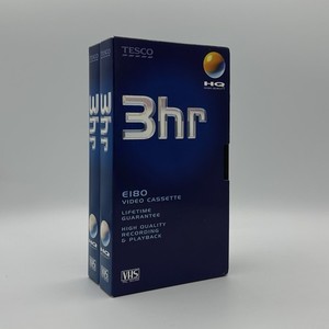 2 cintas de casete de video VHS en blanco Tesco E180 de 3 horas | abiertas y sin usar