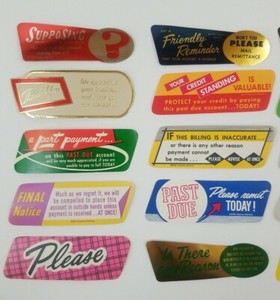 Recordatorios de facturas vencidas de colección de los años 50 - 25 etiquetas estilo lamer y pegar - ¡NUEVO EN STOCK!