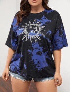 Camiseta SHEIN CURVE Negra Azul Blanqueador Tie Dye Sun Moon Astrology Talla Grande 4XL 3X 4X