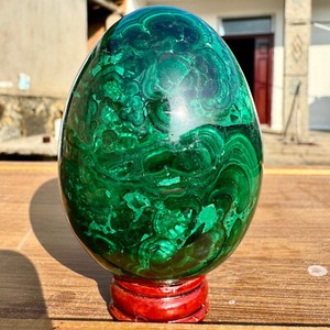 550G Top Malaquita Natural Cuarzo Tallado a Mano Huevo Cristal Decoración Reiki -