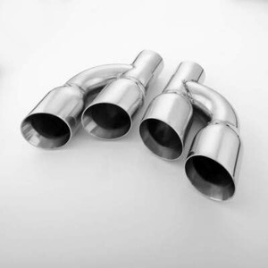 Pair Quad Out 3" In Dual 4" Out 11.8 Long Dual Wall Stainless Steel Exhaust Tips