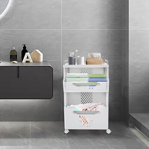 Gabinete de lavandería móvil de 2 niveles con ruedas - Solución de almacenamiento que ahorra espacio