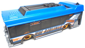 Autobús fundido Hot Wheels Ain't Fare 2022 HW Airlines azul 3 1/8" con naranja blanco