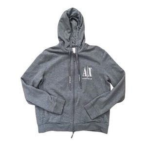 Sudadera con Capucha Armani Exchange Para Hombre Gris Talla Grande Exterior Cremallera Completa