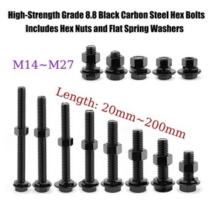 Cabezal de tapa de pernos hexagonales de acero al carbono de grado 8,8 negro con tuerca hexagonal arandelas de resorte plano